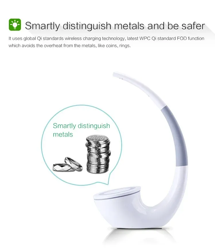 2-in-1 Functionality: A table lamp and wireless phone charger in one device, offering
