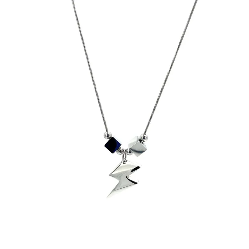 With its sleek lightning bolt shape and high-texture finish, this necklace stands out as a fashionable and eye-catching accessory.