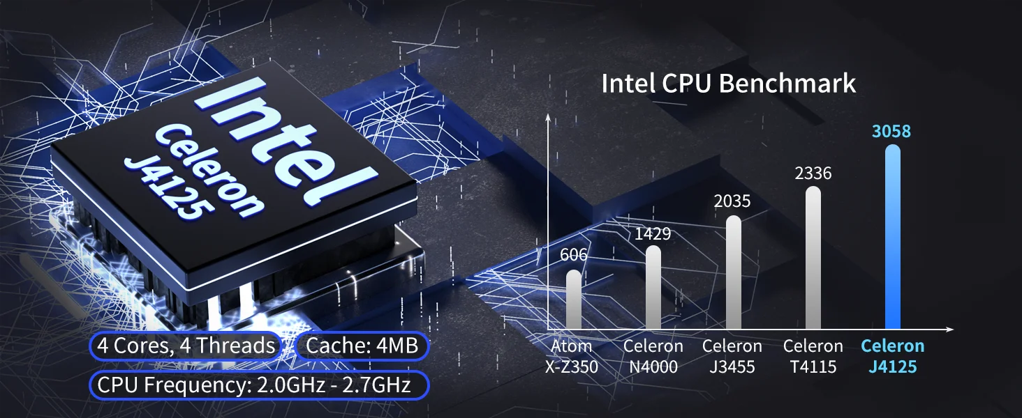 - Intel J4125 Quad-Core Processor: Enjoy smooth multitasking, fast processing, and reliable performance for work, study, or entertainment.