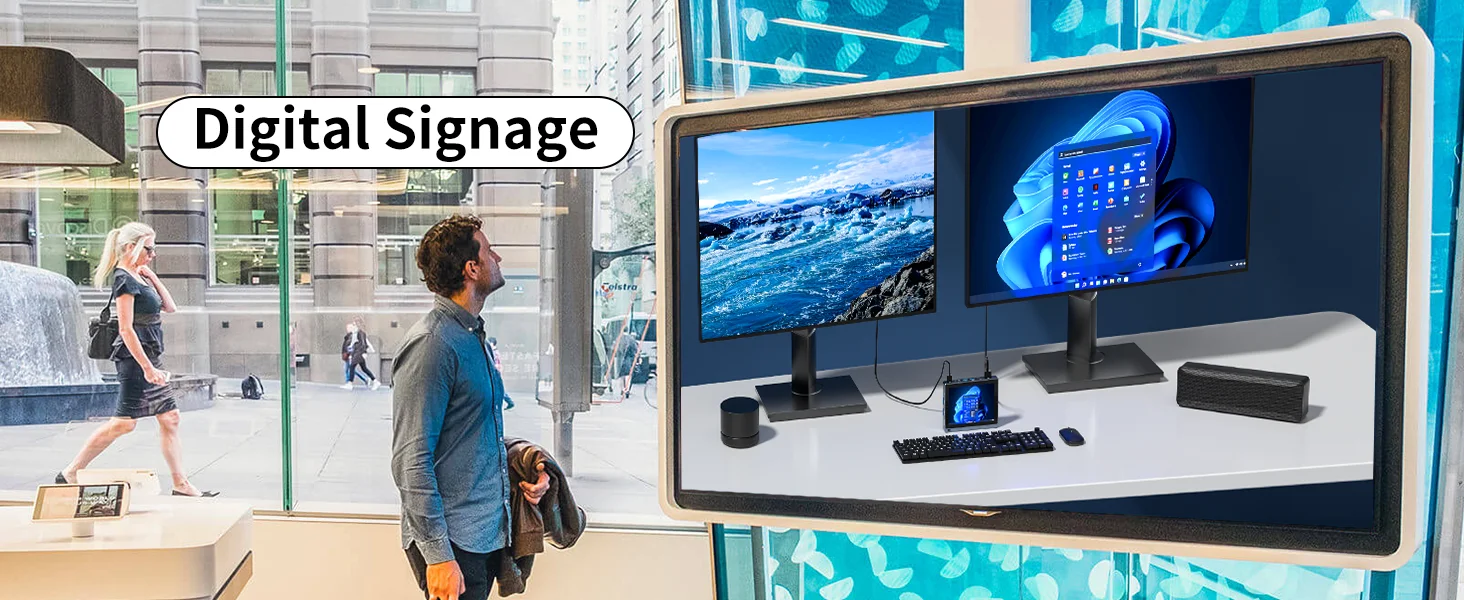 - Retail and Business Applications: Ideal for digital kiosks, POS systems, or other business environments requiring a compact, reliable PC.