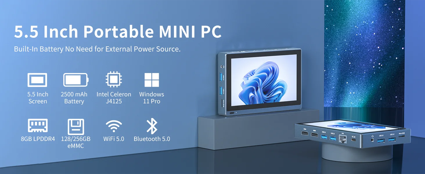 The Higole Gole 1 Pro boasts a sleek, compact design that fits perfectly into your hand or pocket, making it one of the most portable mini PCs available. The fanless build ensures whisper-quiet operation, while the robust construction ensures durability for daily use. Its 5.5-inch touchscreen is perfect for navigating Windows 11, managing tasks, or enjoying media playback.