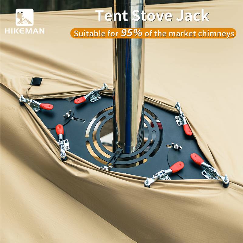 The HIKEMAN Outdoor Stove Jack Kit for Tent is made from high-quality aluminum alloy, ensuring durability and long-lasting performance in harsh outdoor conditions. The kit is designed to be used with tents, allowing you to install a chimney or stovepipe safely without damaging your tent fabric. This stove jack kit features an adjustable design that fits most tent sizes, offering a secure fit and preventing heat or smoke damage to your tent.