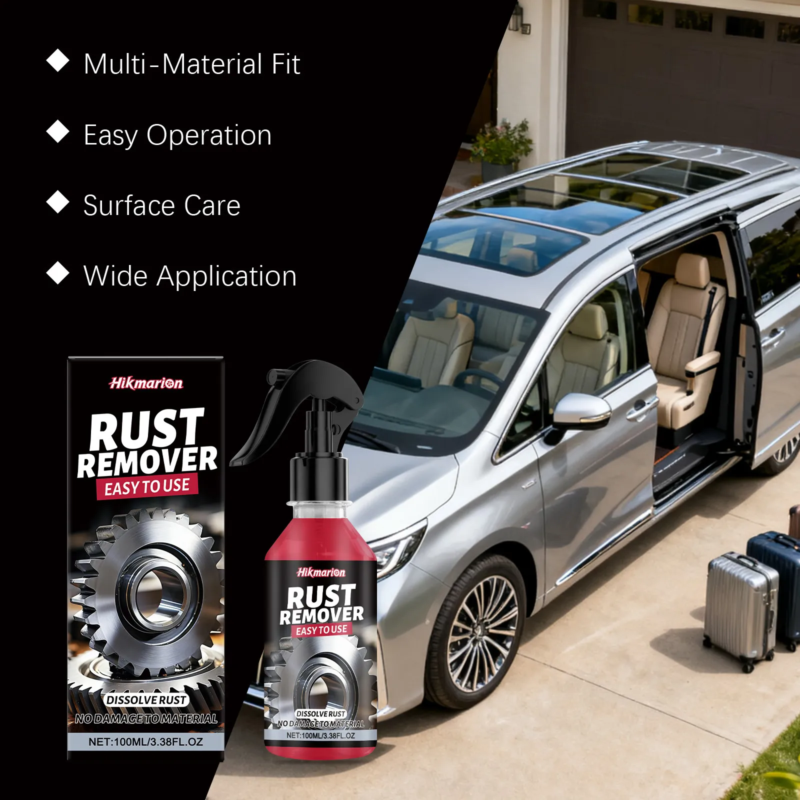 Hikmarion rust remover, rust removal spray, rust cleaner for metal, car rust remover, non-damaging rust remover, easy-to-use rust remover, automotive rust remover, metal rust dissolver