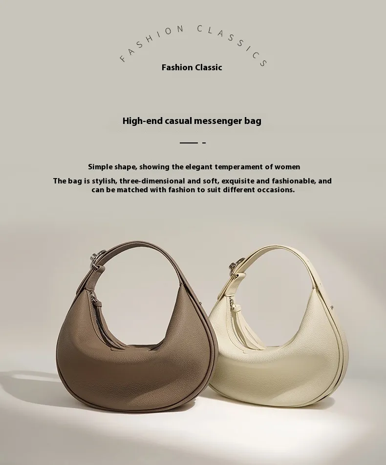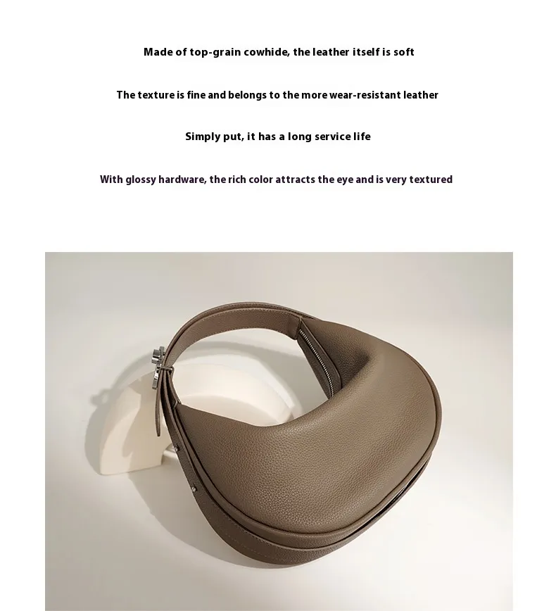 Made from premium-quality cowhide leather, this bag offers a luxurious feel, natural grain, and exceptional durability. Its sleek texture enhances its timeless aesthetic, ensuring it complements any outfit.