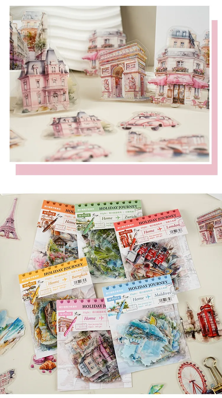 Bring the charm of world architecture into your journal with the Holiday Journey Series Architecture Journal Stickers. Perfect for scrapbooks, planners, diaries, and travel journals, these stickers capture the beauty of famous buildings and landmarks, making every page a mini travel adventure.