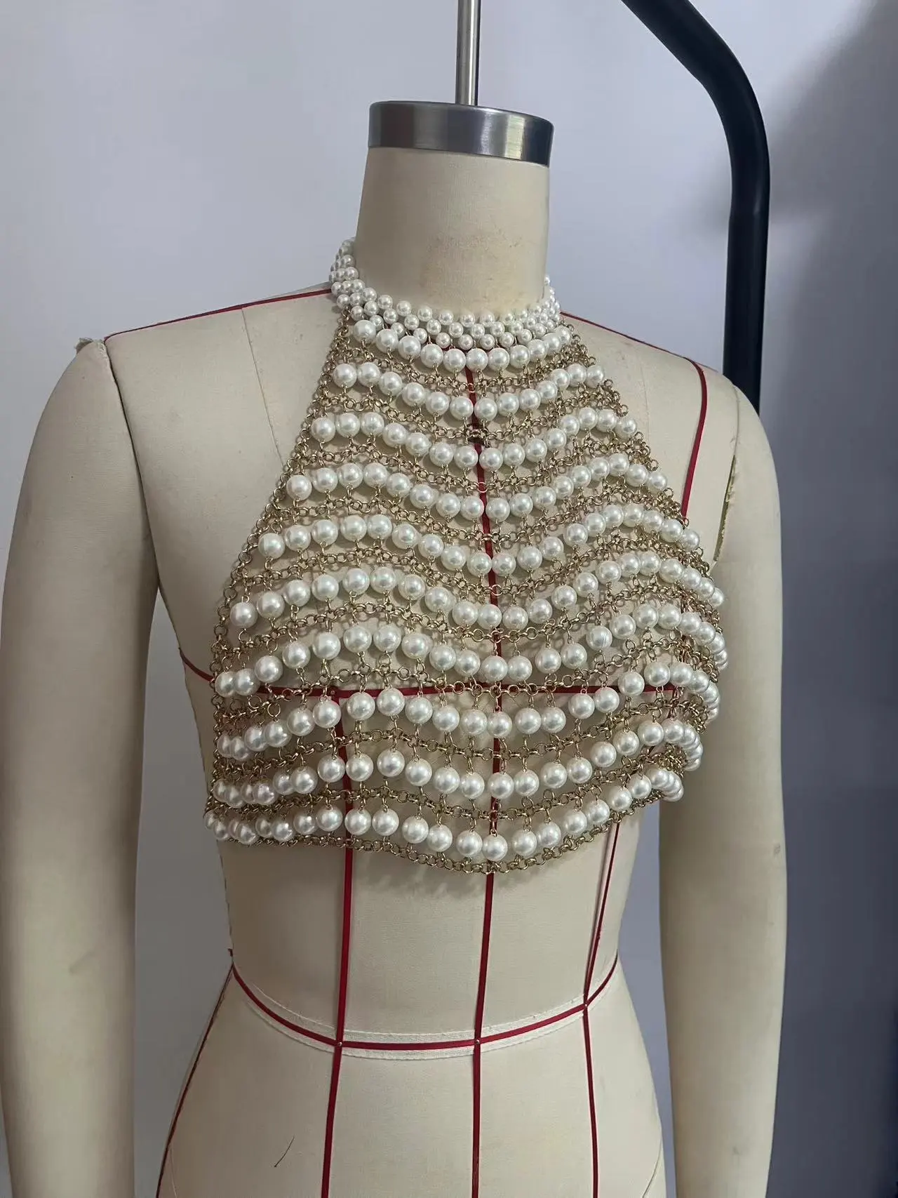 Holiday Wear Pearl Chain Vest Top: Elegant, Chic, and Effortlessly Stylish