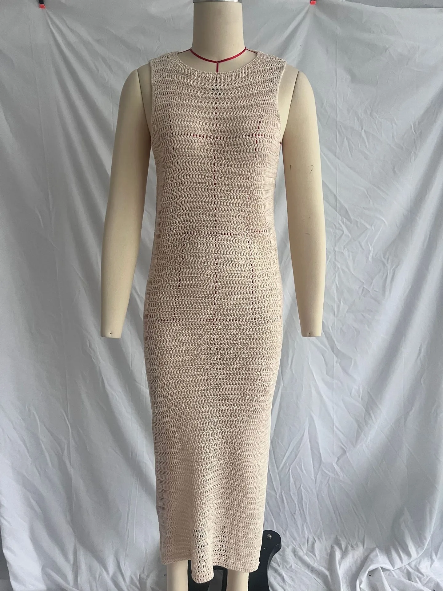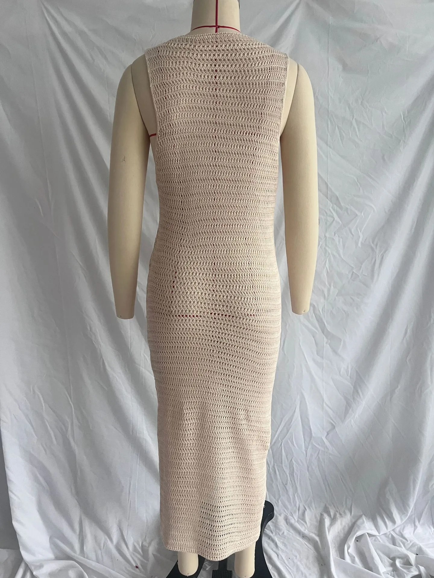 Hollow Knit Vacation Beach Split Chic Long Dress