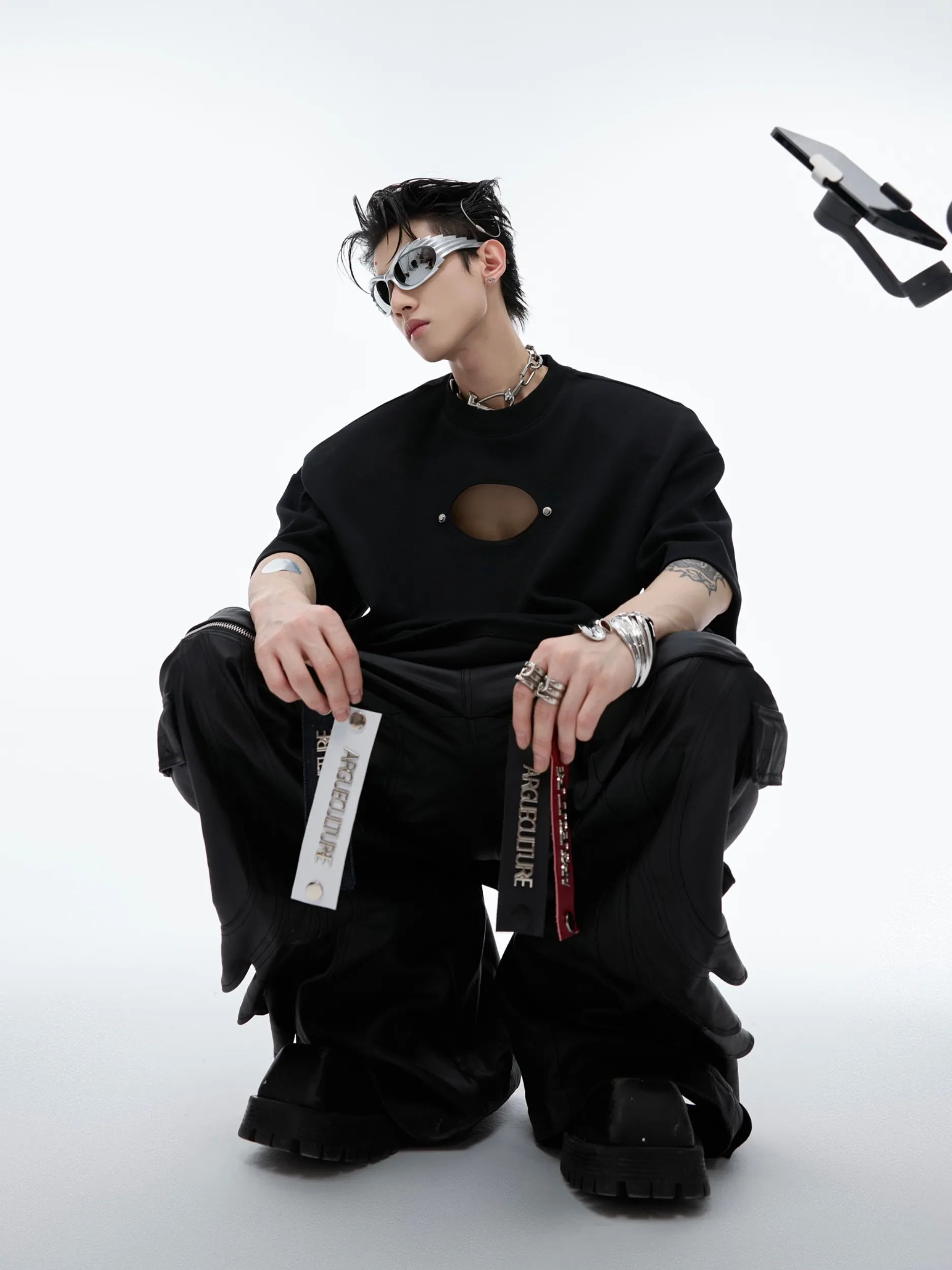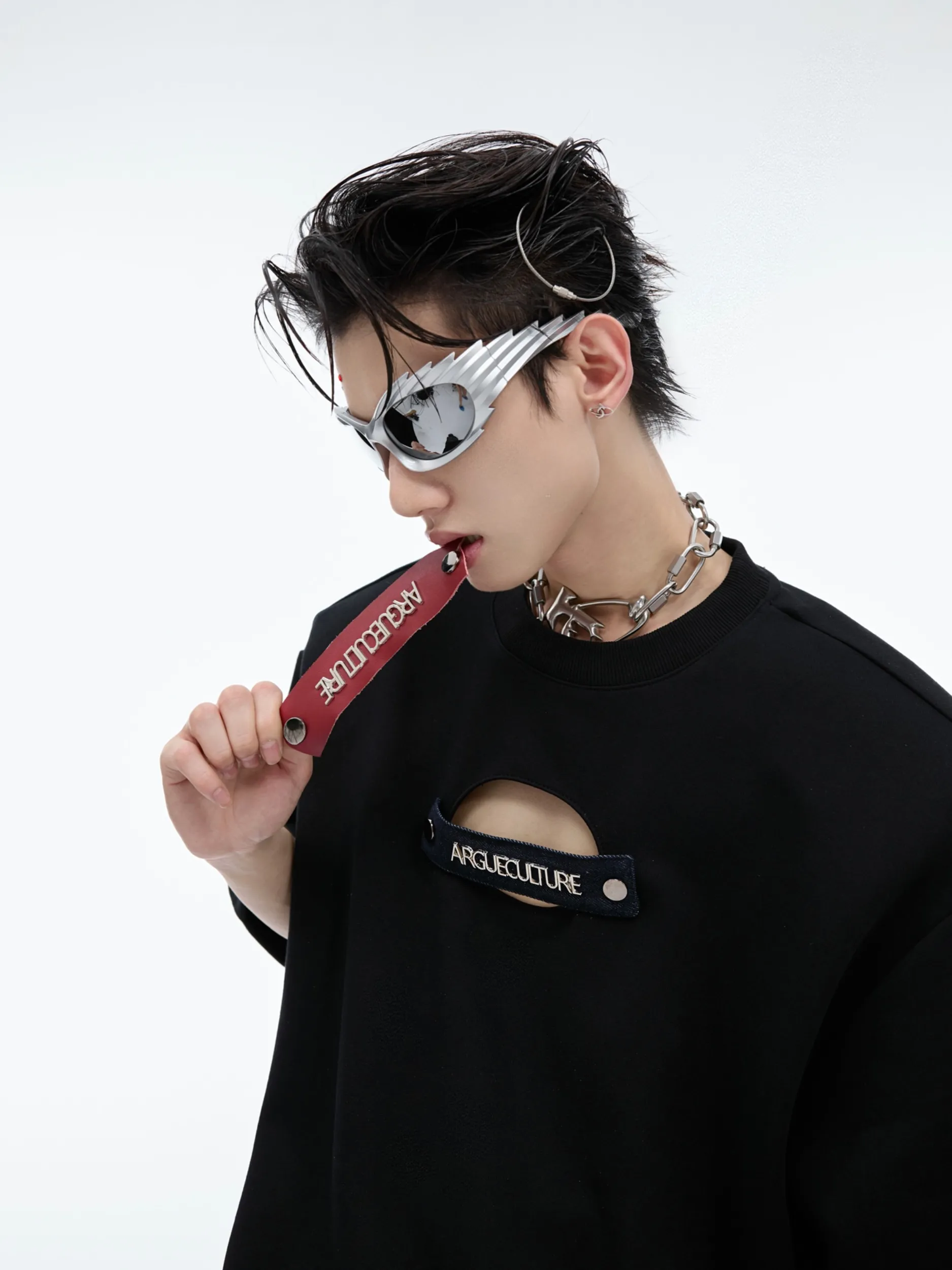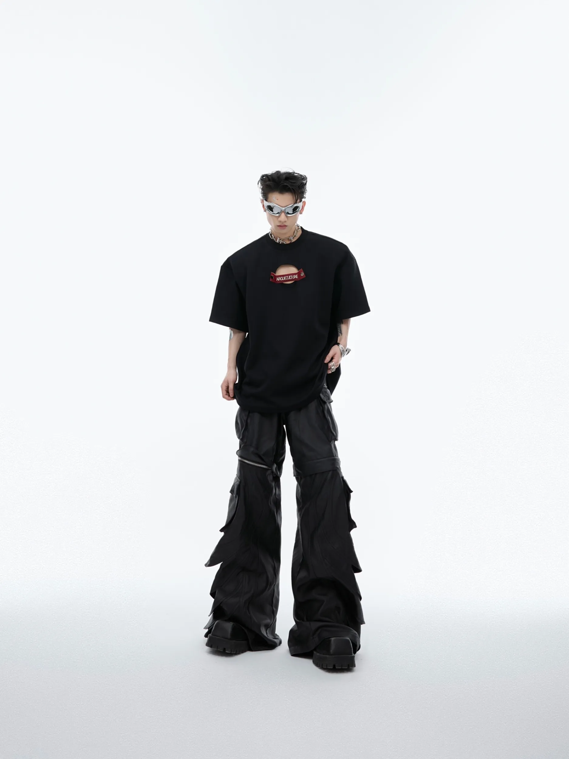 Hollow-out Detachable Short Sleeve Loose-fitting Pure Cotton T-shirt