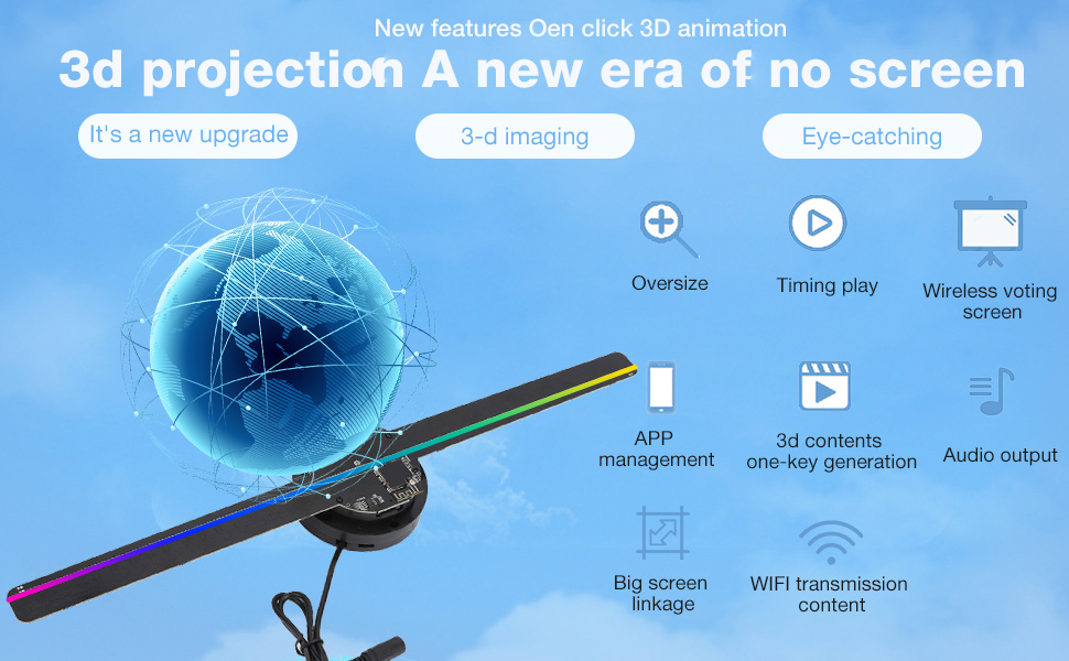 Want something fun and creative? Elevate your visual presentations with our advanced Holographic 3D Projector Rotary Fan, featuring state-of-the-art holographic technology. With a resolution of 1080p, it projects high-definition 3D holograms that appear to float seamlessly in mid-air. The rotary fan mechanism ensures a stable and continuous display, while the built-in software allows for easy customization of holographic content. Ideal for professional settings, this projector fan operates silently with an energy-efficient design, making it perfect for exhibitions, retail environments, and high-traffic events. Transform your space into a captivating visual experience with our top-of-the-line holographic display solution!