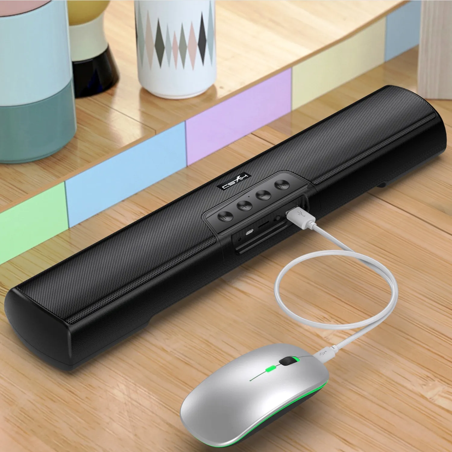 - Slim profile complements TVs, desks, and home entertainment systems.