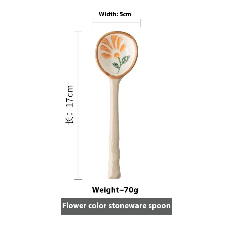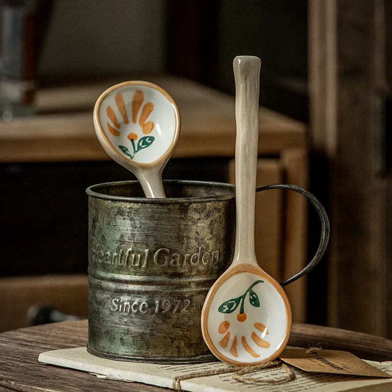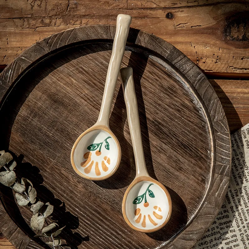 Home Ceramic Retro Hand-painted Cute Long Spoon