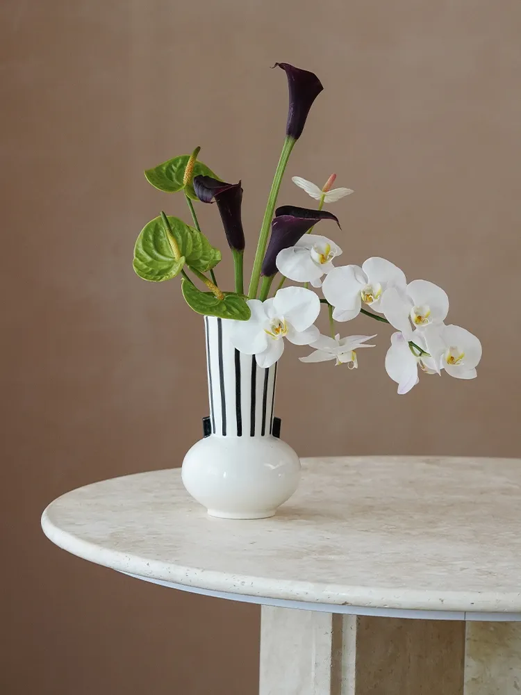 Though this vase shines as a standalone decorative piece, it is also ideal for holding fresh flowers, elegant dried florals, or even artificial greenery. A few well-placed stems or branches add natural beauty to the vase, creating a harmonious contrast with the vase’s sleek lines and luxurious finish. Whether you prefer classic roses, simple lilies, or lush eucalyptus, this vase enhances the beauty of any floral arrangement.