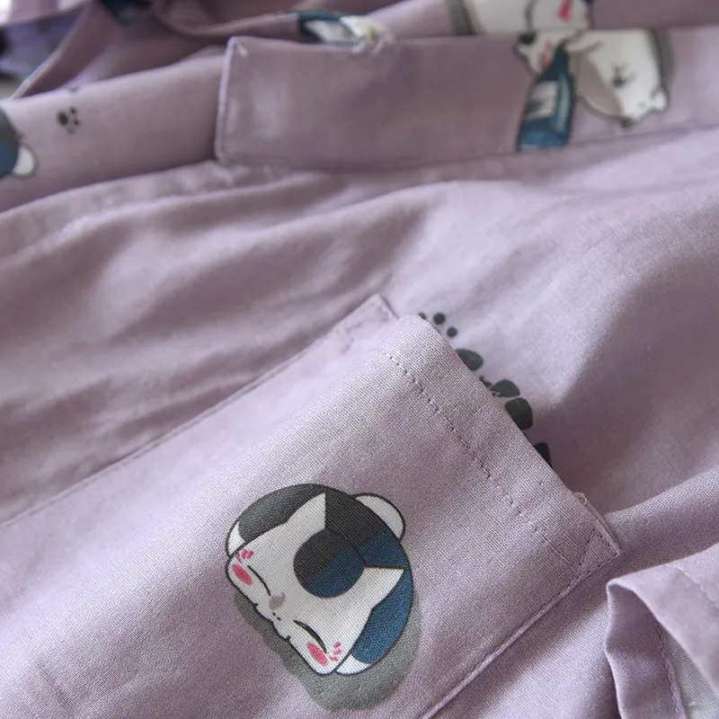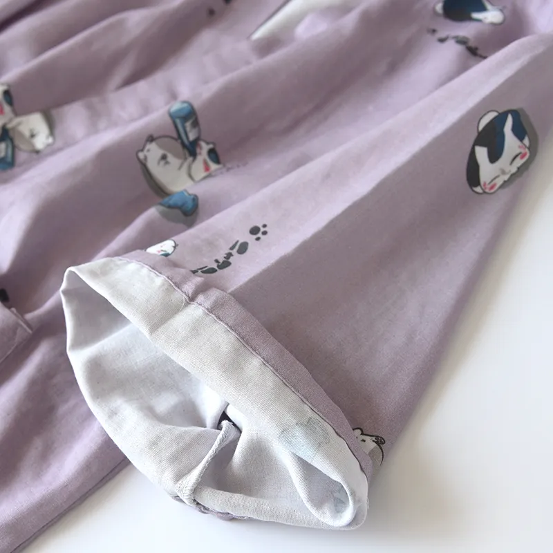 Color classification: Purple-Gauze Kimono Drunk Cat-Female Dark Green-Gauze Kimono Drunk Cat-Men's Pants