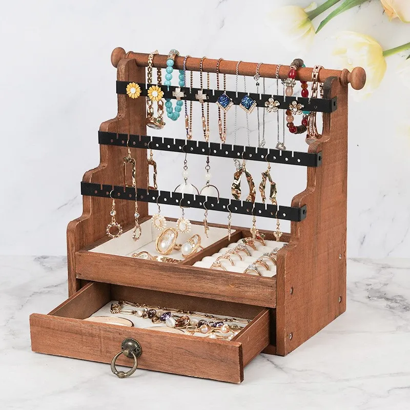 This jewelry stand is more than just an organizer—it's a piece of décor in its own right. Whether you place it in your bedroom, closet, or bathroom, it adds a touch of sophistication and organization to any space. The wooden finish adds warmth and natural beauty to your home.