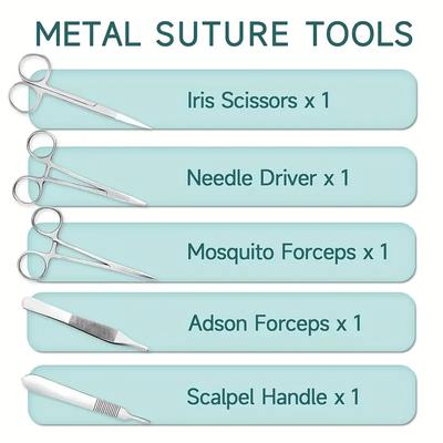 High-Quality Suture Tools: Made from durable metal, the suture tools included in the kit are designed to withstand repeated
