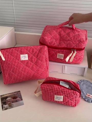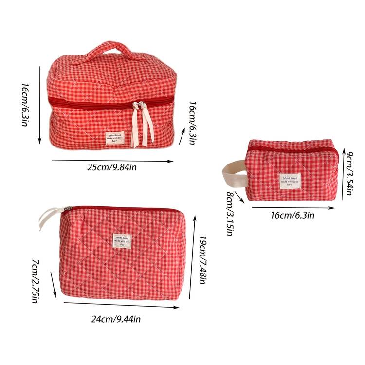 Featuring a charming blueberry check-inspired design in mixed colors, this set delivers a high-aesthetic look while remaining fully functional for everyday use. The bags are easy to carry, easy to clean, and ideal for tossing into handbags, backpacks, luggage, or gym bags.
