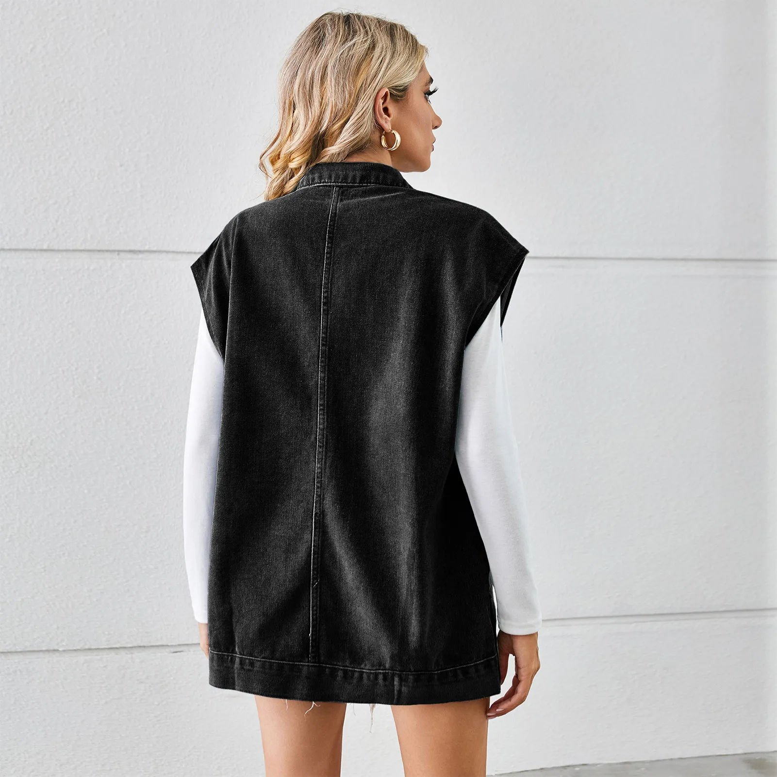 Denim is known for its versatility, and this vest takes it a step further by providing a perfect layering option. Pair it with your favorite t-shirts, tank tops, or long-sleeve shirts to add depth and texture to your outfit. Layer it over a dress for a chic contrast, or wear it with a hoodie for an on-trend urban look.