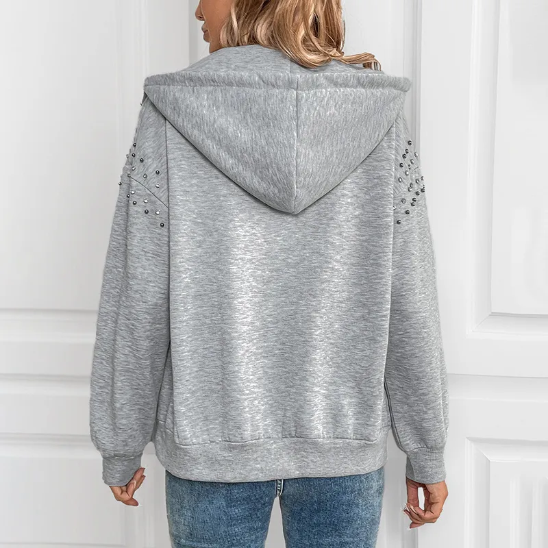 Hooded Long Sleeve Sweater Rivet Fashion Women