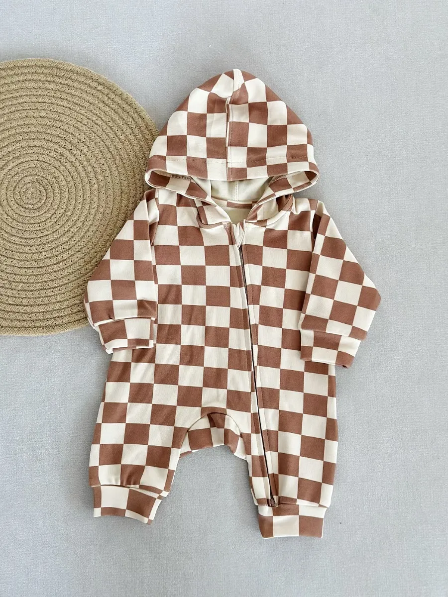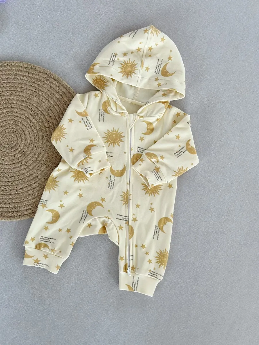 👶 Hooded Pure Cotton Romper – Children’s Long Sleeve Jumpsuit Outerwear