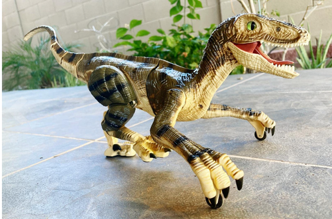 enough to withstand rough play. This interactive remote velociraptor features a “One Key Demo” mode, which showcases its