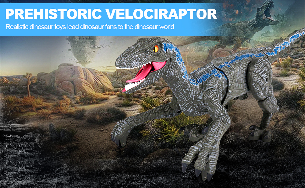 - Dinosaur Toys For Kids-Our electronic velociraptor is about 18.1’’L x 6.5’’H which built-in rechargeable lithium battery,it can be used continuously for 2 hours after being fully charged.This realistic robot dinosaur will spark your children's Hands-on ability & imaginative,and make away from electronics.It is for imaginative play,Birthday Party, Christmas, Holiday.Suitable for playing indoors or outdoors.