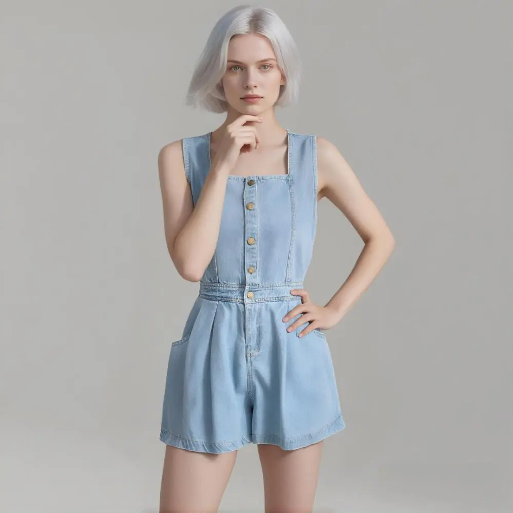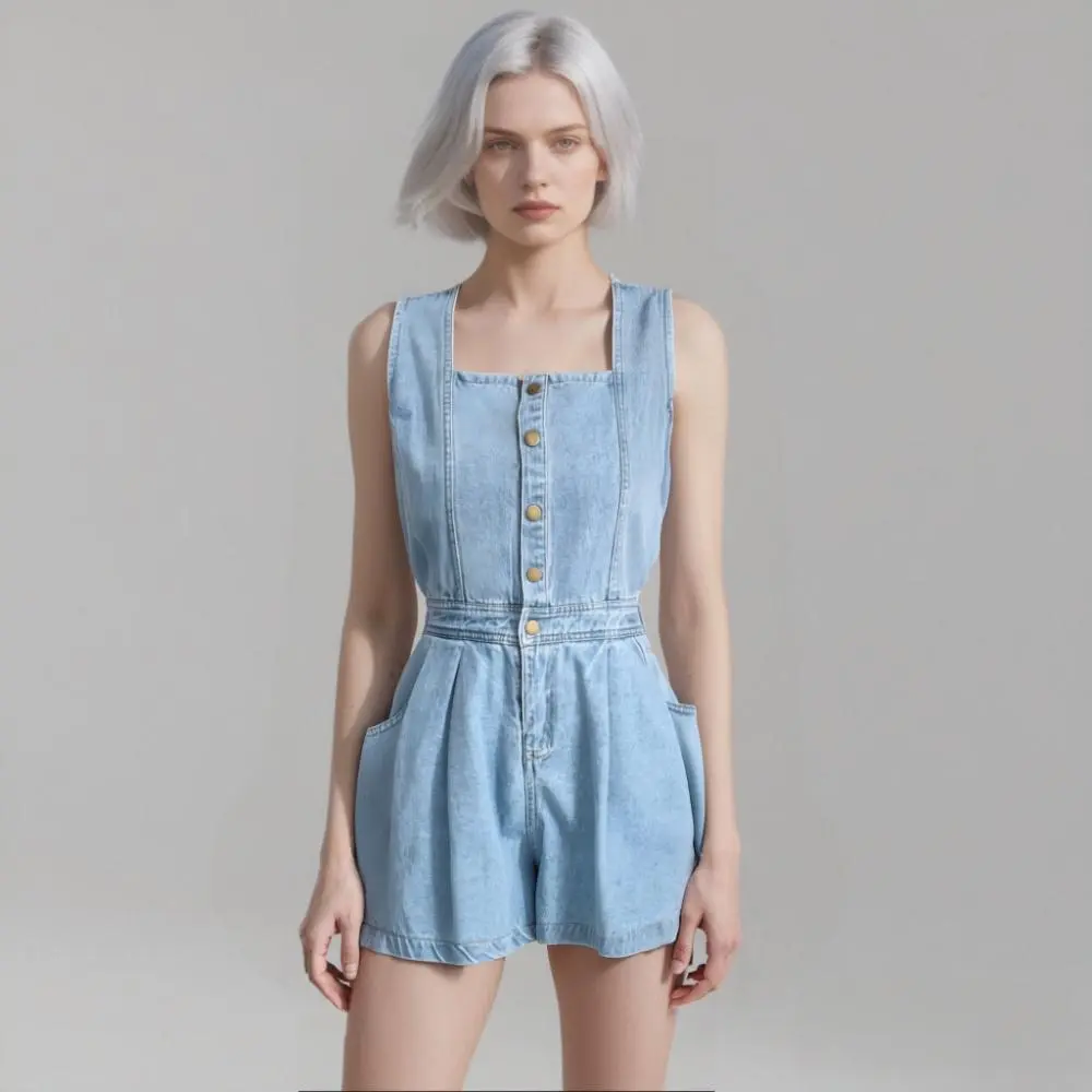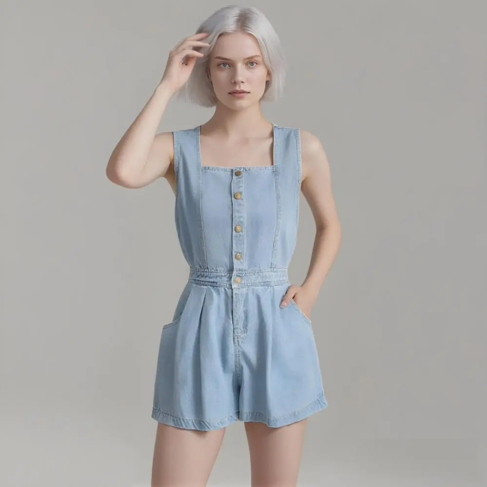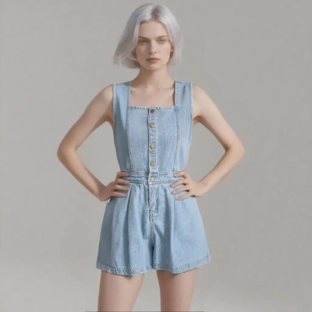 Durable Denim Fabric: Made from high-quality denim, this jumpsuit is designed to be durable, comfortable, and easy to care