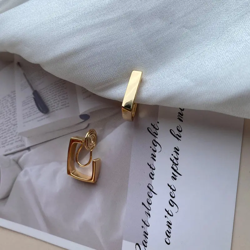 stylish earrings without the commitment of traditional piercings. Featuring a sleek, geometric design in a luxurious golden finish, these