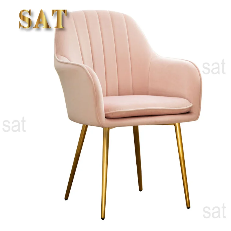 - Product Name (Optimized): Hot Sale Modern Colorful Pink Armrest Dining Chairs – Velvet Restaurant Dining Room Chair with Gold Metal Legs