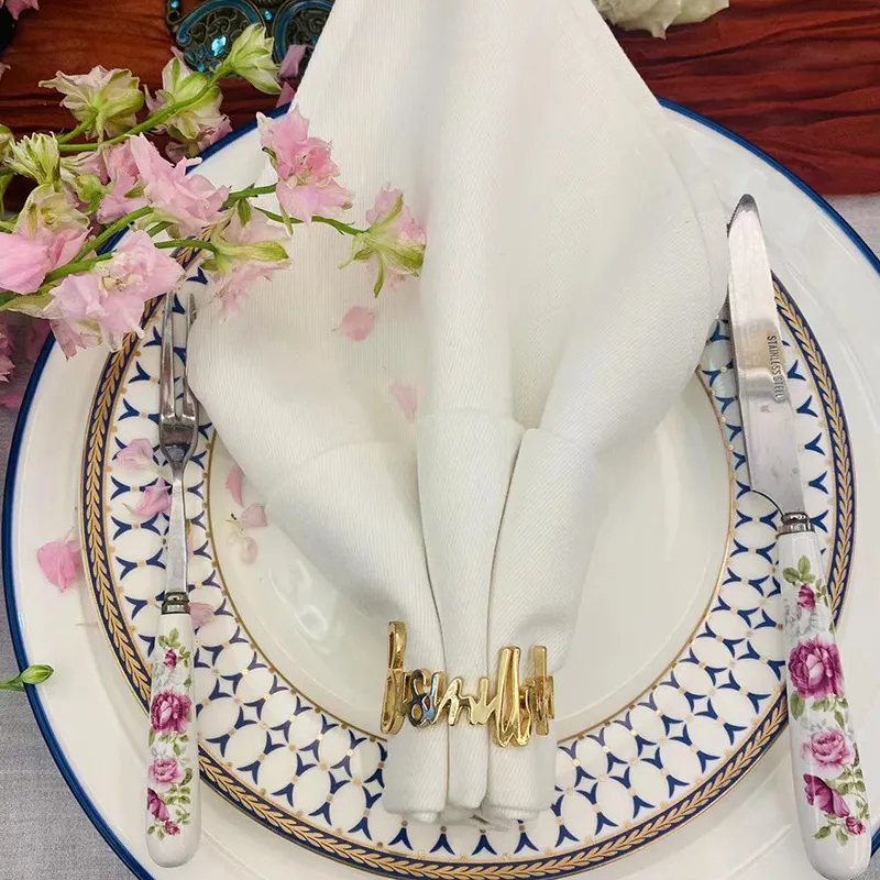 Hotel Table Setting Accessories Simple Metal Light Luxury English Letters Napkin Ring