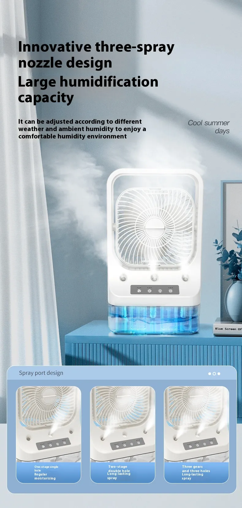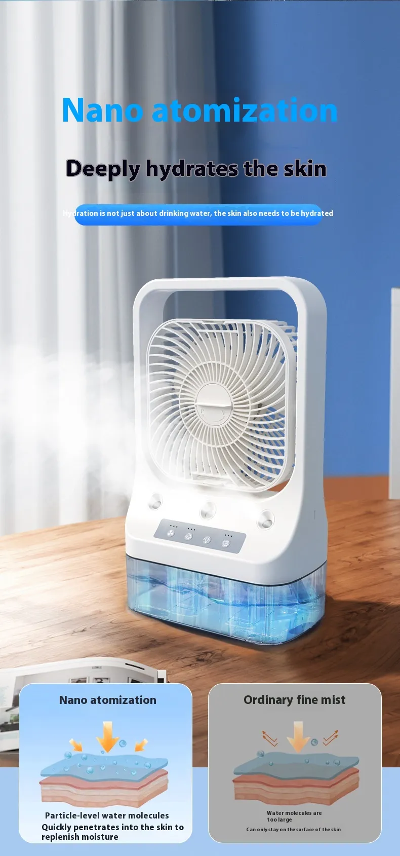 Household Cooling Fan Usb Rechargeable Head Adjustable Air Cooling Water Cooled Air Conditioning Tank Low Noise Air Cooler Fans