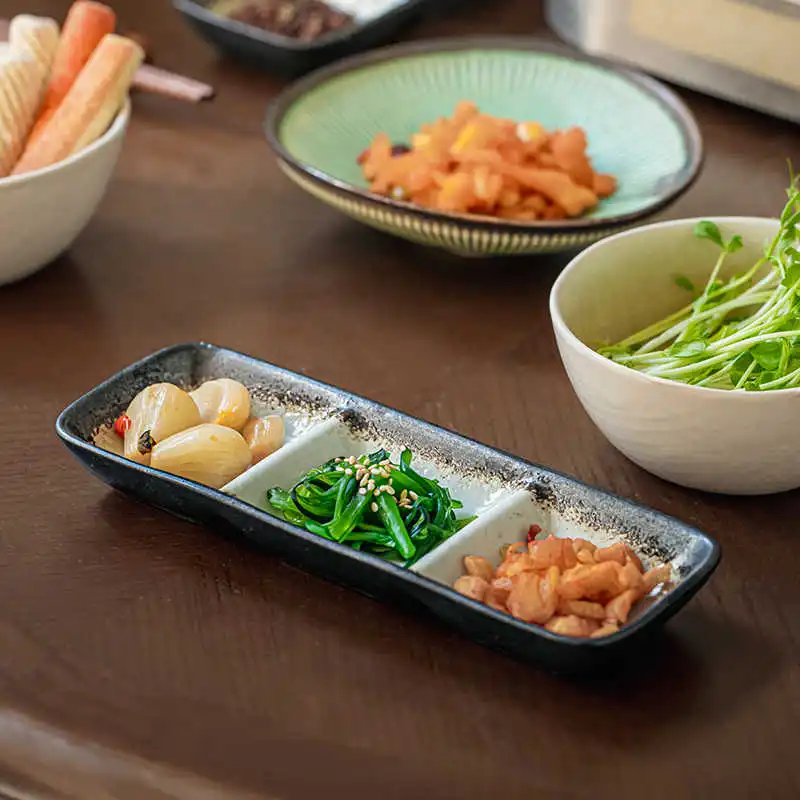Color classification: 7.5-inch three-grid sauce dish-ink stone x
