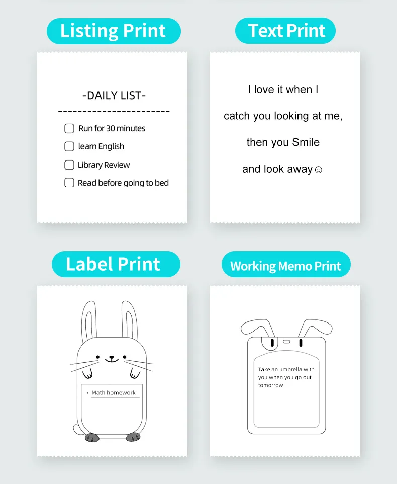 Multi-Purpose Printing: Perfect for printing labels, small photos, to-do lists, receipts, and even custom designs, making