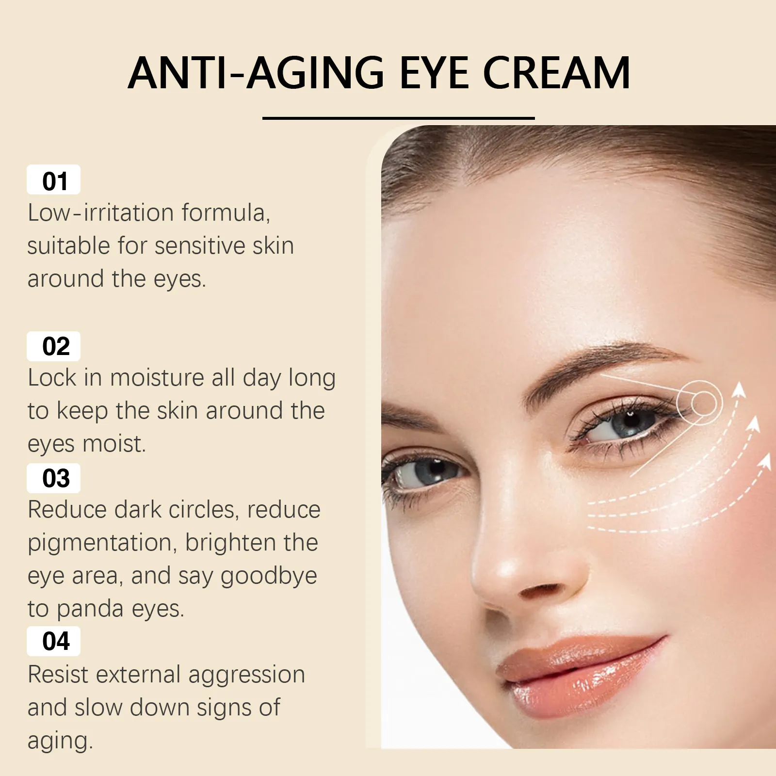 Gentle Formula: The eye cream is perfect for sensitive skin, formulated to be non-irritating and soothing for daily use.