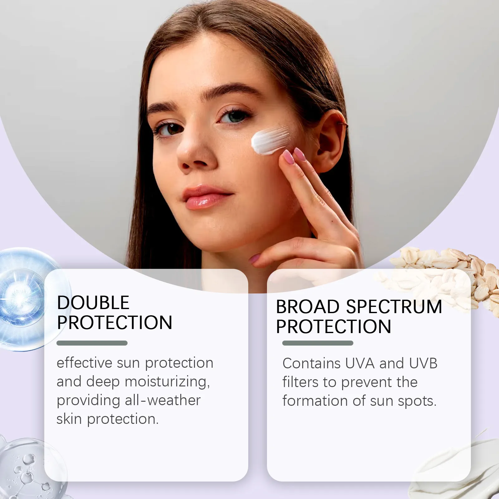 Broad-Spectrum SPF Protection: Shields the skin from both UVA and UVB rays, preventing sunburn and premature aging.