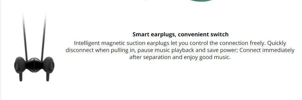 Intelligent magnetic suction earplugs let you control the connection freely. Quickly disconnect when pulling in, pause music playback and save power; Connect immediately after separation and enjoy good music.