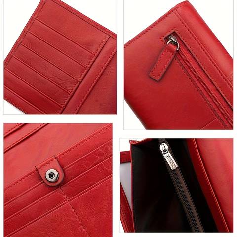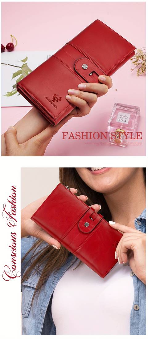 The HUMERPAUL Women’s Genuine Leather Wallet is the epitome of style, functionality, and sophistication. Crafted from top-grain leather, this sleek red long clutch is designed to keep your essentials organized while adding a pop of color to your wardrobe. With multiple card slots, a zipper pocket for coins, keys, or your phone, and a secure snap closure, this wallet is both practical and fashionable for daily use.