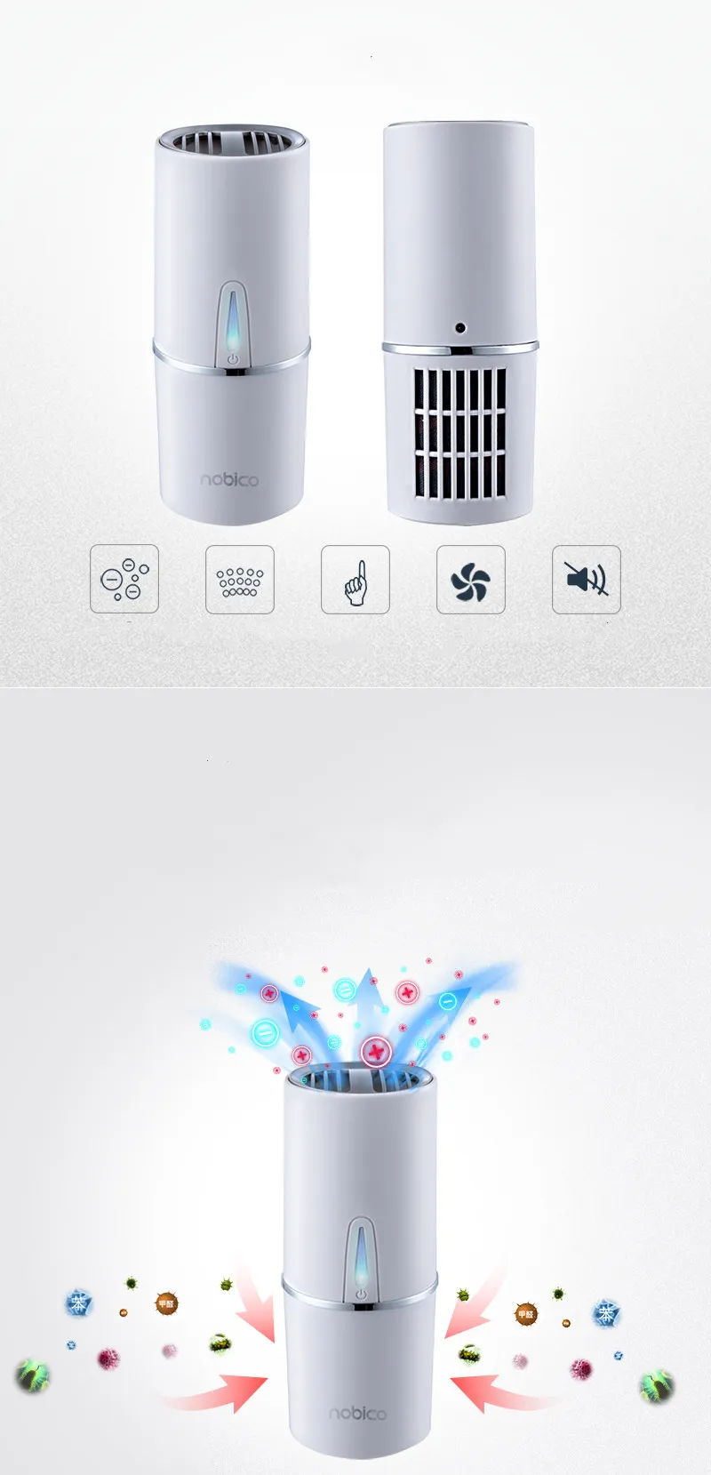 Function: Eliminate odor, filter dust, sterilize, absorb TVOC gas, aroma function, humidify