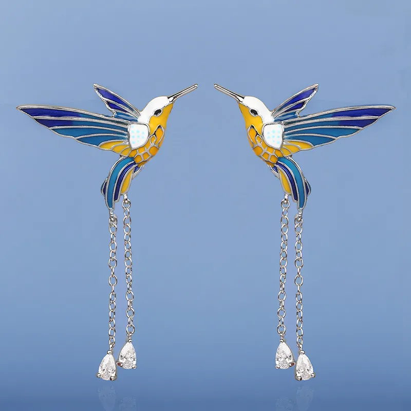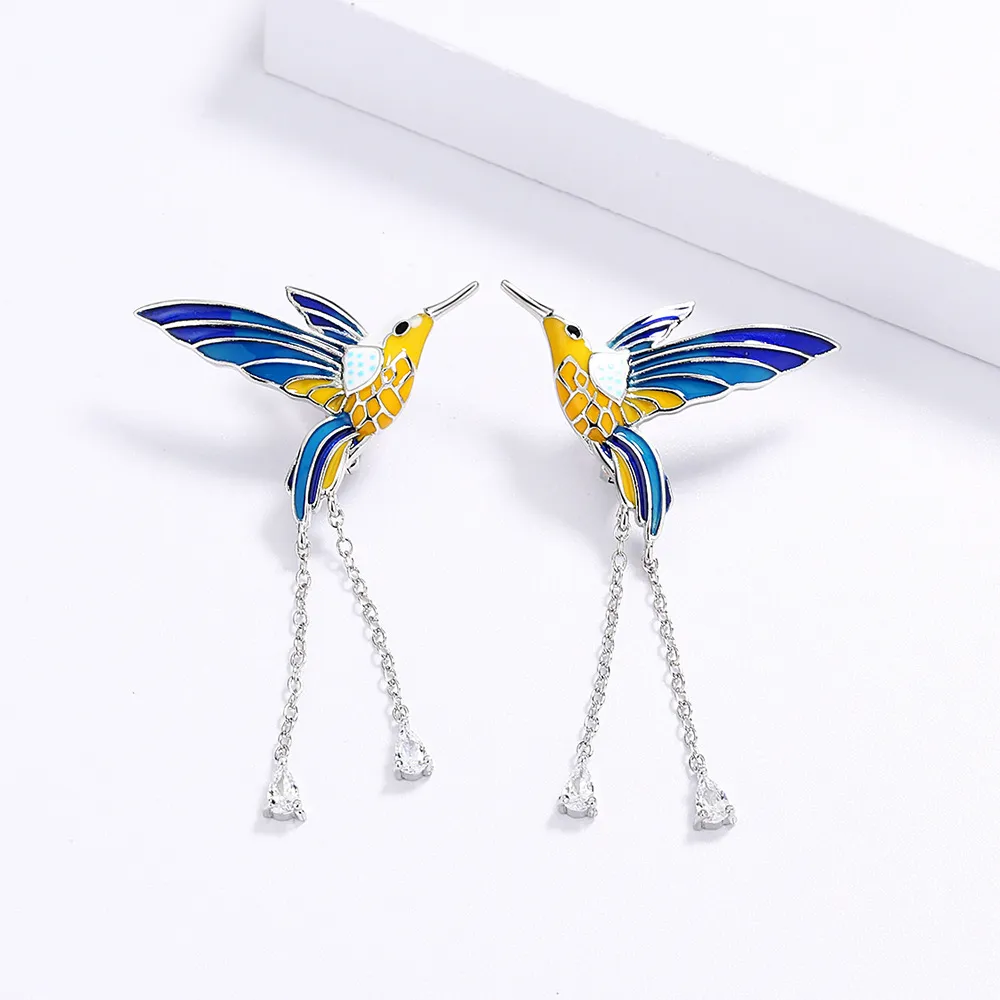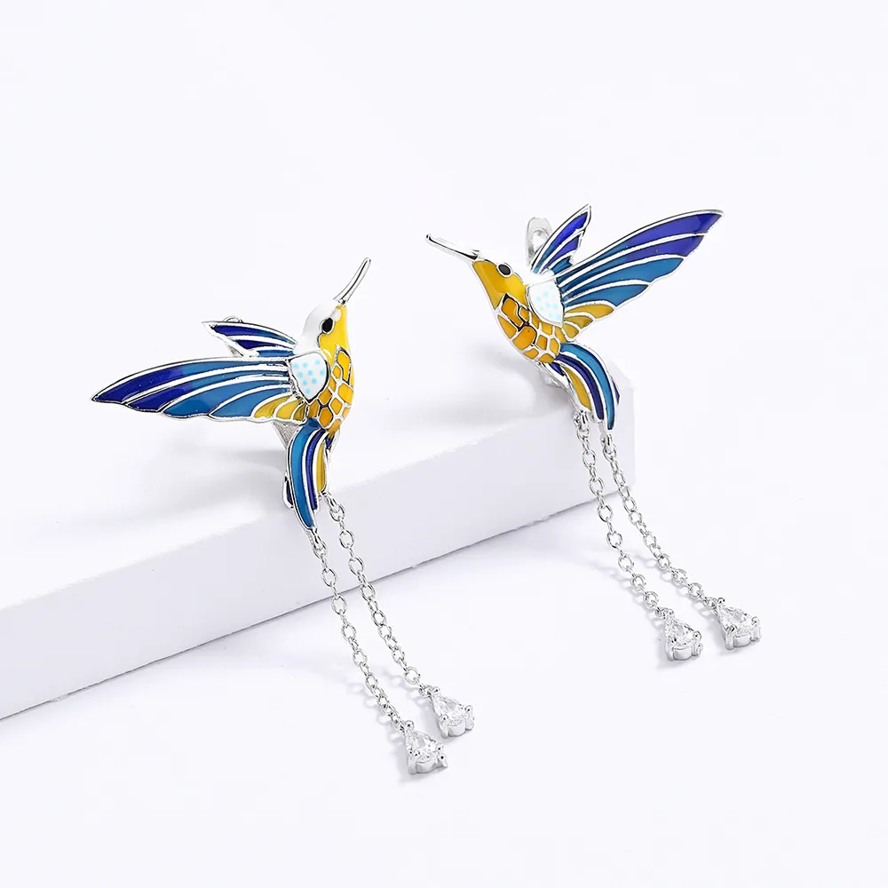 Hummingbird Earrings Epoxy Colored Animal Elements Bird Country Style Female Earrings