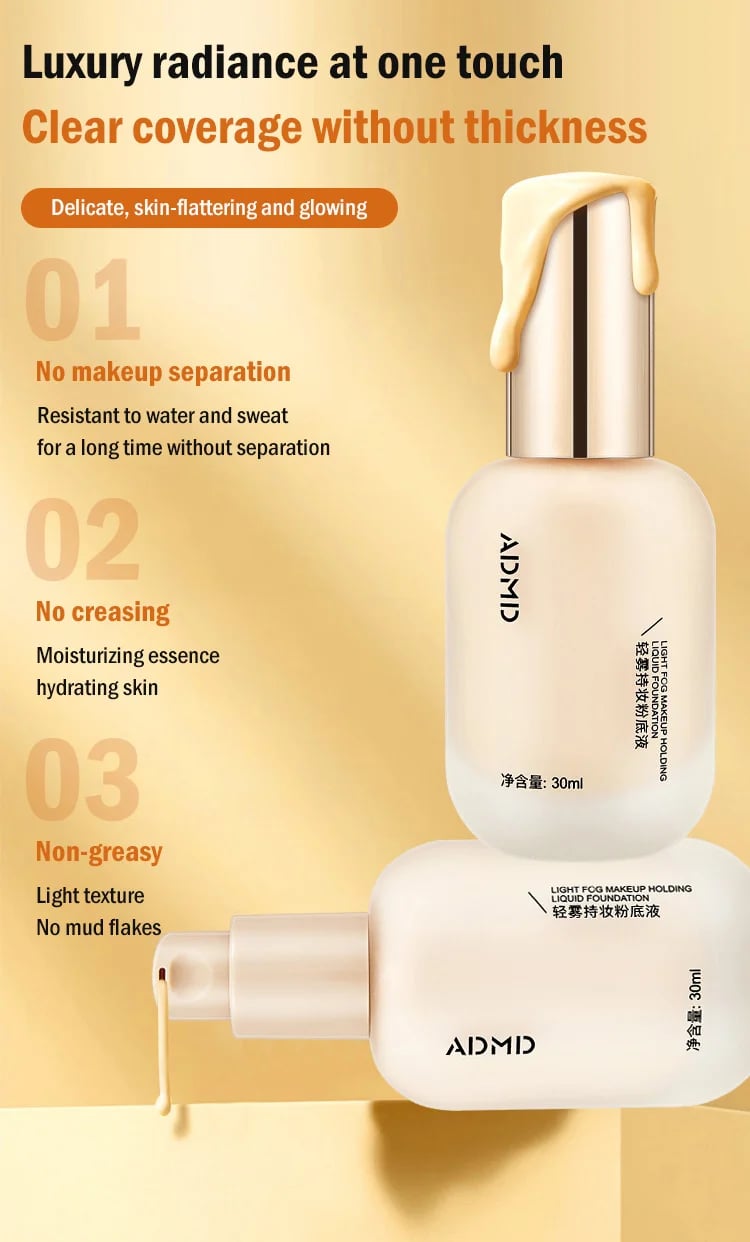 💖Admd Light Fog Makeup Holding Liquid Foundation - has a moist texture, fine and smooth, moisturizing and non-sticky, easy to apply. This admd foundation is silky smooth and moisturizing with a lightweight texture for easy application.