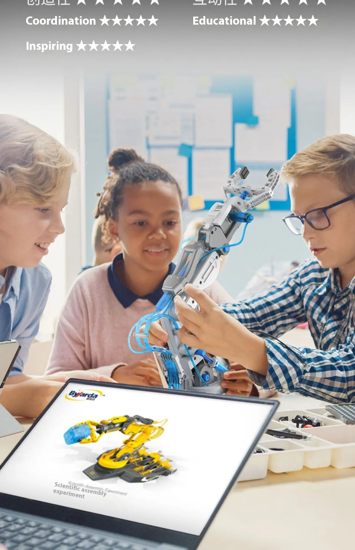 This experiment set is ideal for solo play, allowing children to independently explore and learn. However, it’s also suitable for group play, where kids can work together to assemble the arm, experiment with tasks, and even engage in friendly competitions. The cooperative aspect fosters teamwork, communication, and shared problem-solving.