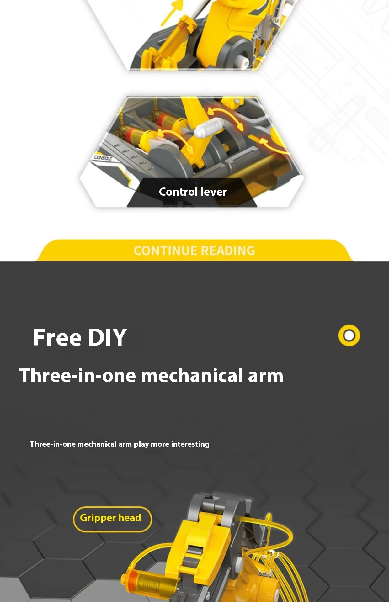 Specifications: 3-in-1 Hydraulic Mechanical arm [Blue and White] screwdriver, 3-in-1 Hydraulic Mechanical arm [engineering yellow]
