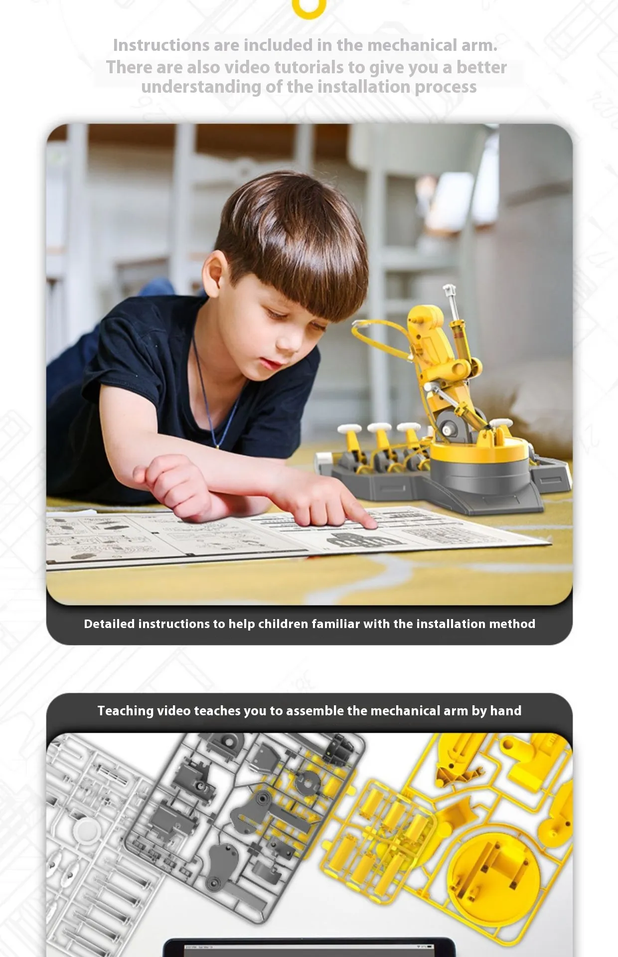 The set includes detailed, step-by-step instructions to guide kids through the assembly process, allowing them to construct the hydraulic arm independently or with minimal assistance. Each part is clearly labeled, ensuring that even beginners can complete the project with ease. This DIY approach builds confidence and gives children a sense of accomplishment as they see the arm take shape.