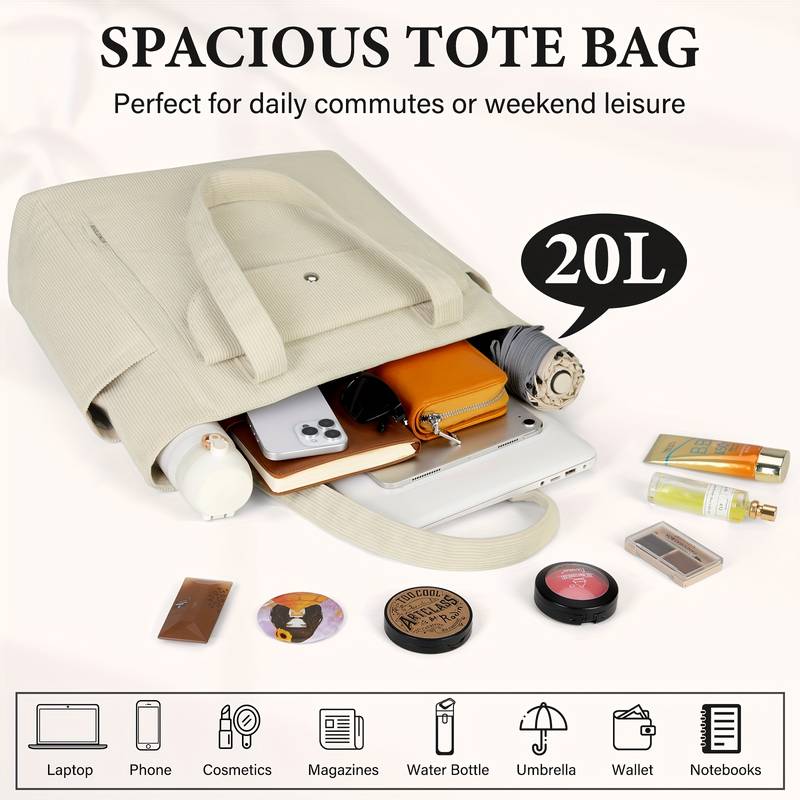 IGOLUMON Womens Lightweight Corduroy Tote Bag Stylish, Durable, and Perfect for Everyday Use