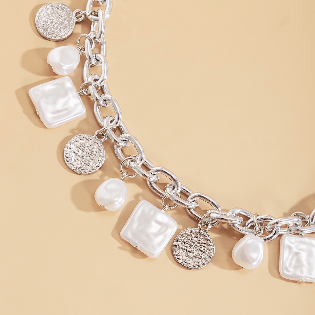 Imitation Pearl Coin Clavicle Chain