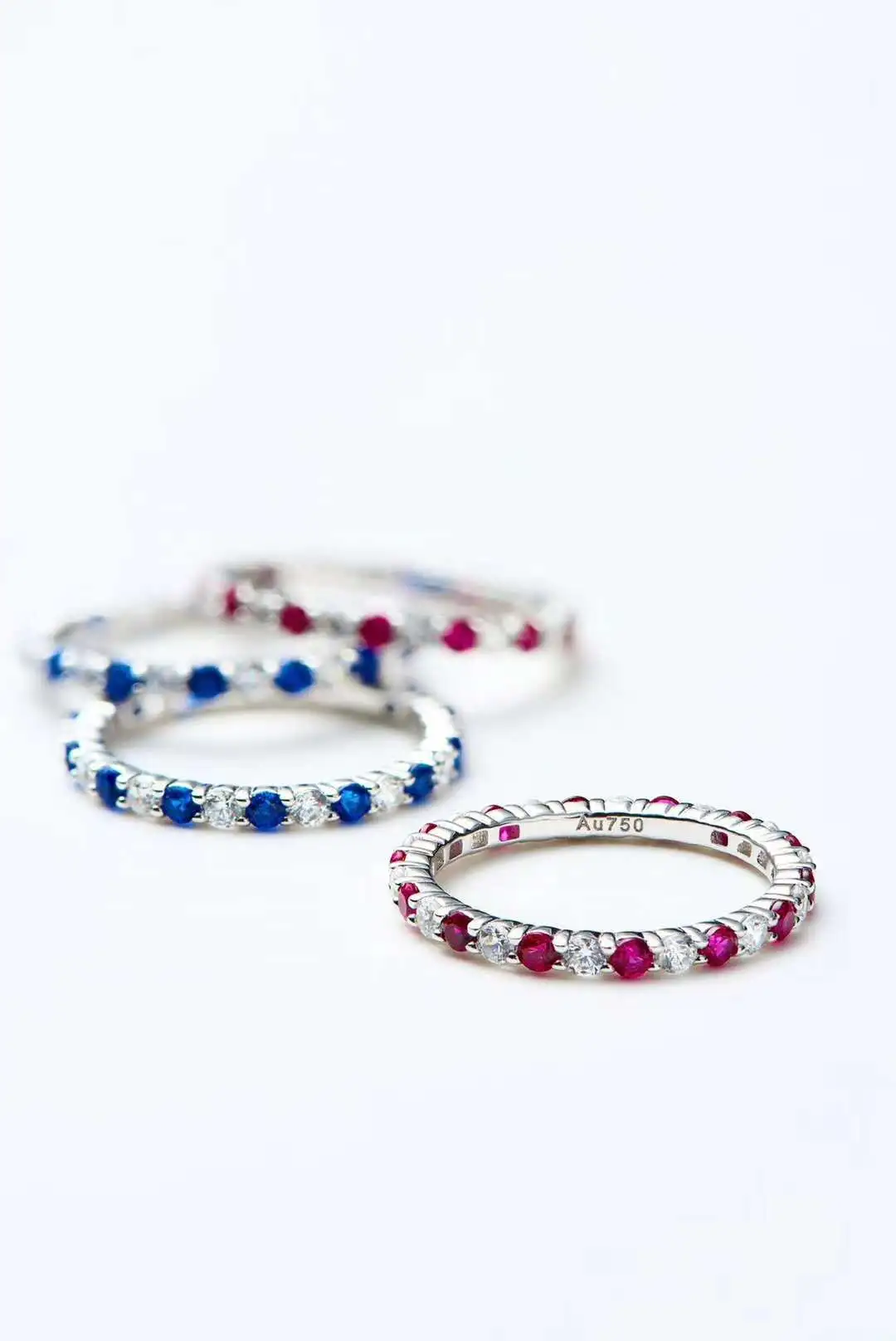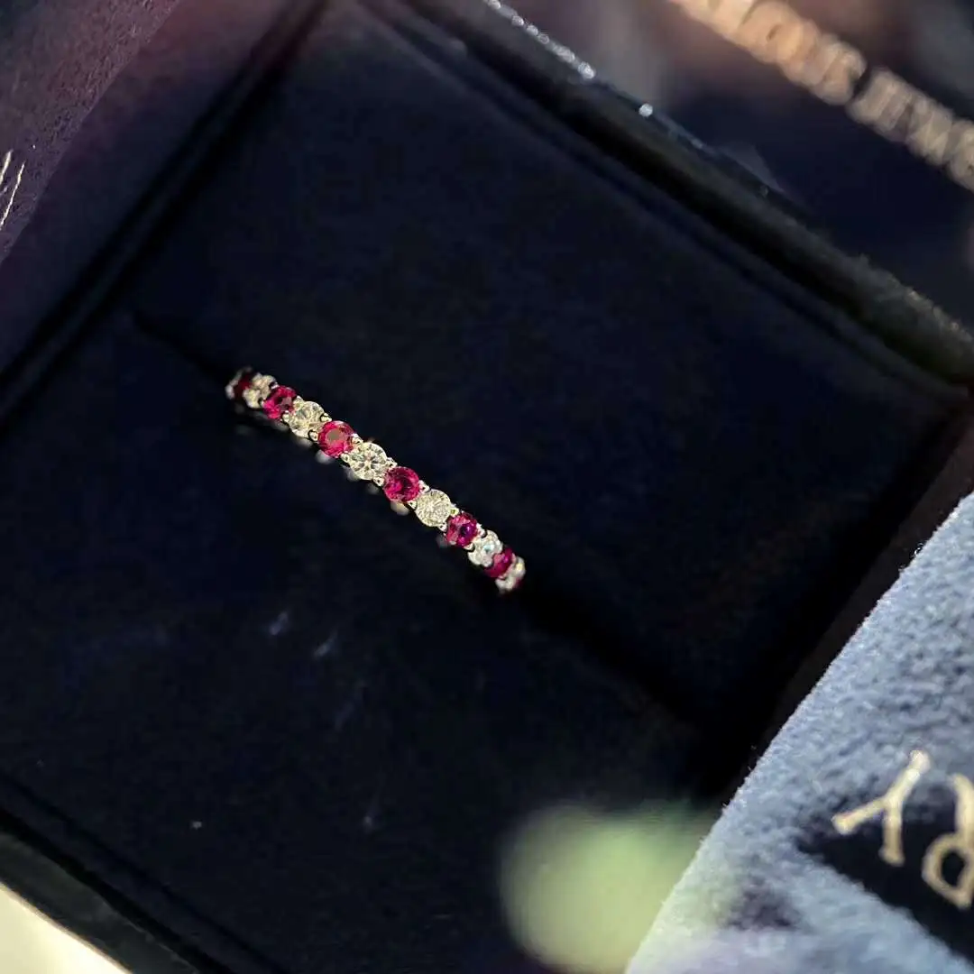Imported 5A high carbon diamond natural red sapphire row diamond vice ring diamond ring 925 silver plated platinum stacking ring