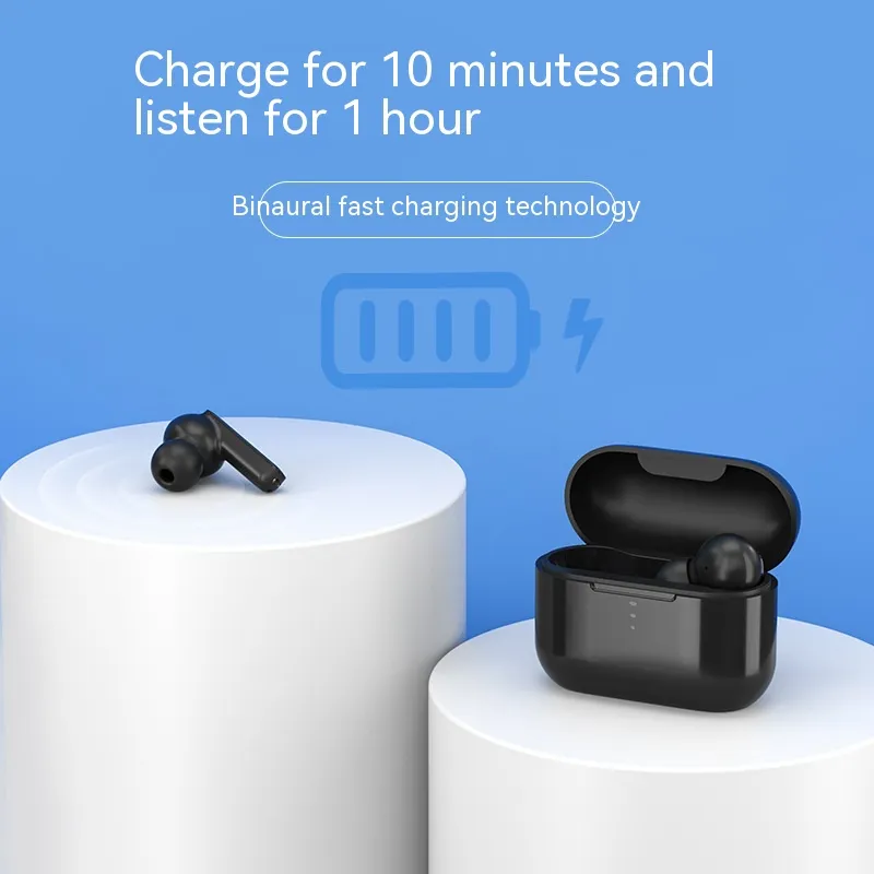 Magnetic suction charging: Both the charging case and earphones are equipped with built-in magnets, which use a magnetic suction charging