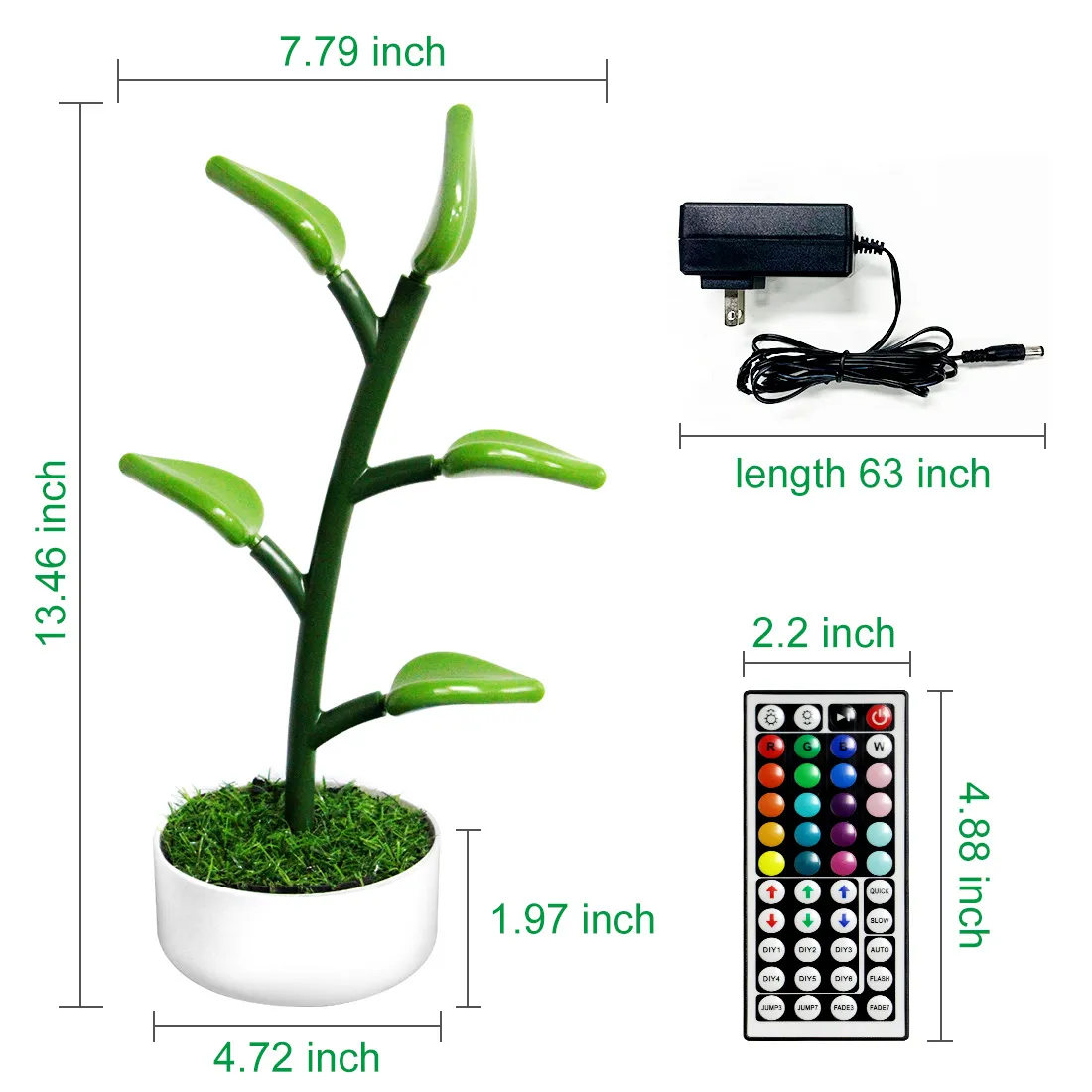 Indoor Home Decor with Remote Control Table Lamp and LED Houseplant Light – Modern RGB Artificial Leaves Design