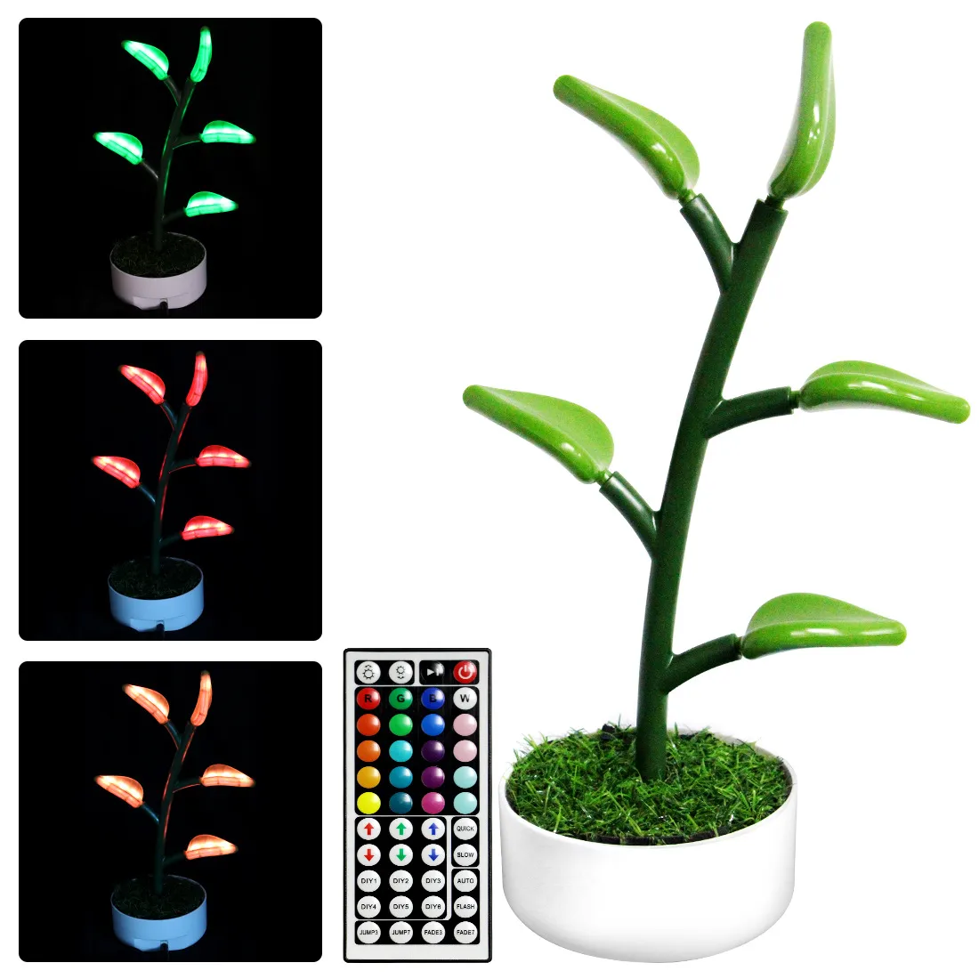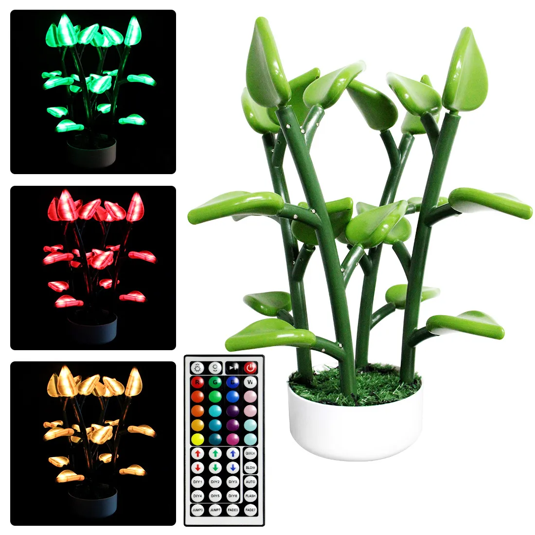 Indoor Home Decor With Remote Control Table Lamp LED Houseplant Light 4 Modes Date Gift Dinner Artificial Leaves Modern RGB
