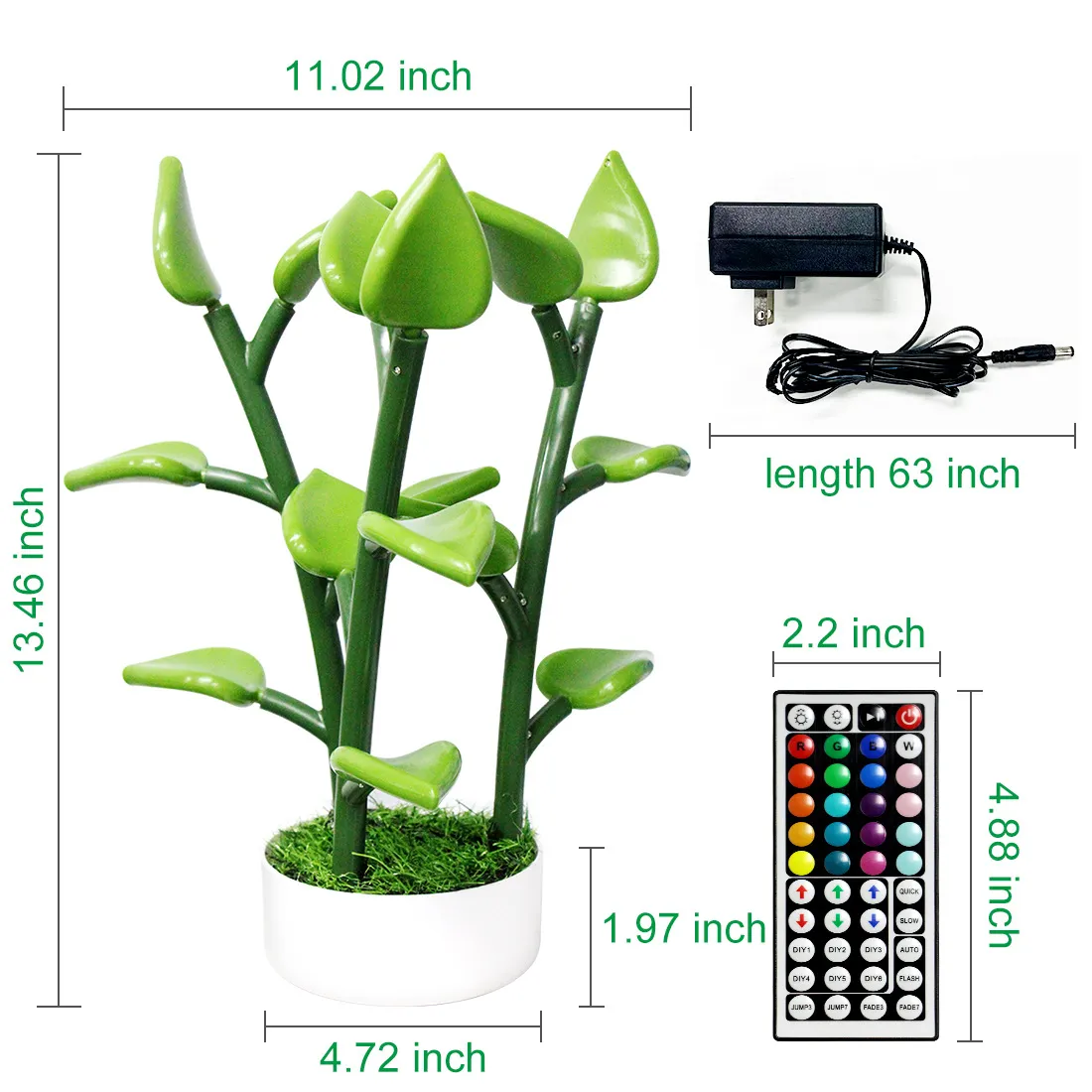 Indoor Home Decor with Remote Control Table Lamp and LED Houseplant Light – Modern RGB Artificial Leaves Design