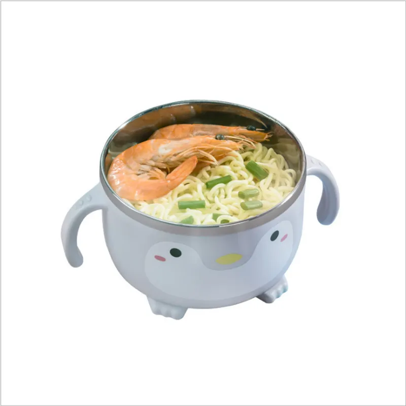 Infant 304 Stainless Steel Tableware Cute Penguin Cartoon Baby Bowl With Handle